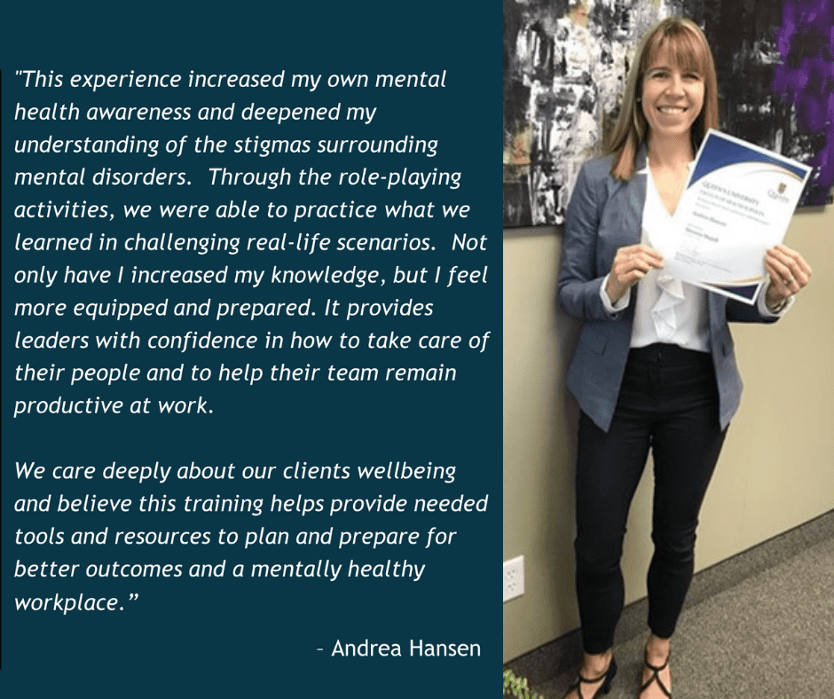 The Workplace Mental Health Leadership Certificate Program is the first of its kind in Canada, developed in partnership with the Bell Canada Mental Health and Anti-Stigma Research Chair and Faculty of Health Sciences at Queen’s University. Certification showcases organizational leadership and commitment to a mentally healthy workplace, through best practices and innovative solutions.